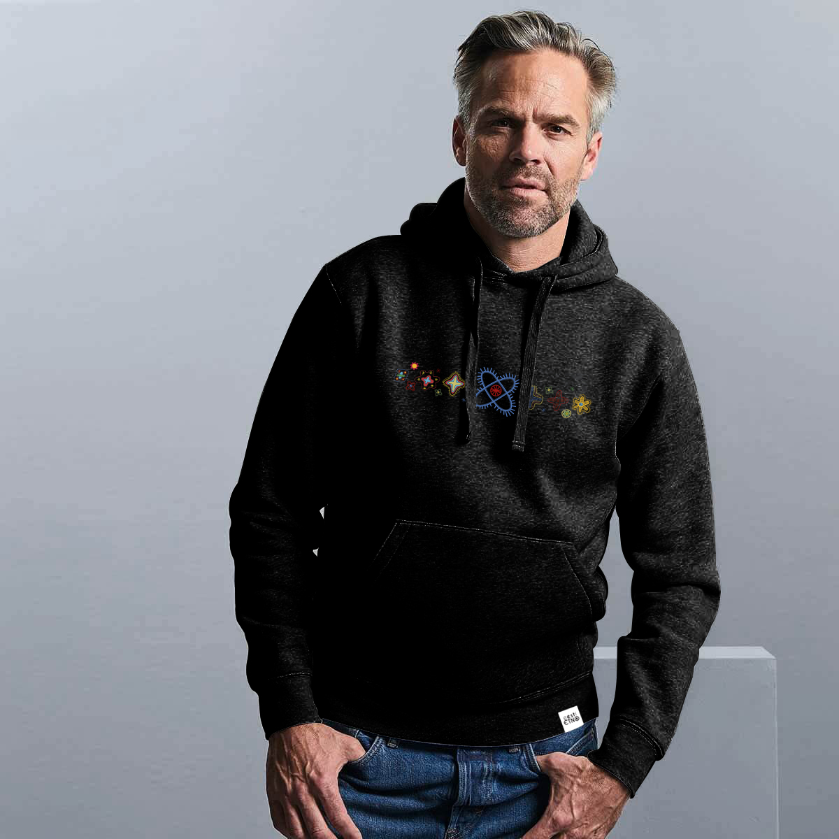 Meeste kapuutsiga pusa Helme tikandimotiiviga must